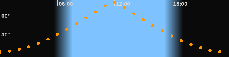 | Höchster Stand (Kulmination) | 11:50 Uhr (h = 86,7°) |