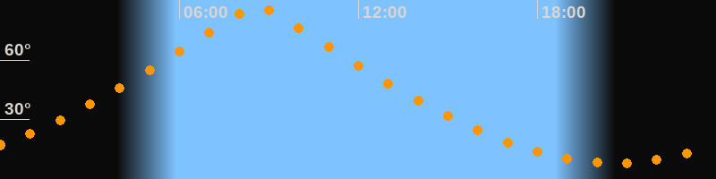 | Höchster Stand (Kulmination) | 08:37 Uhr (h = 86,7°) |