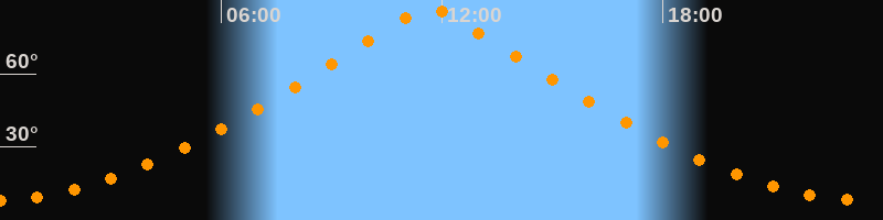 | Höchster Stand (Kulmination) | 11:40 Uhr (h = 86,7°) |