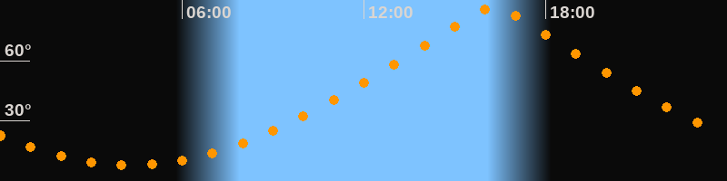 | Höchster Stand (Kulmination) | 16:16 Uhr (h = 86,7°) |