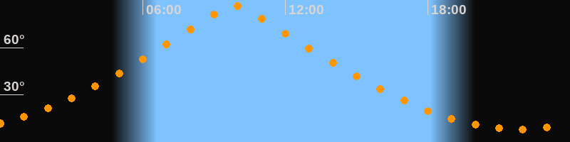 | Höchster Stand (Kulmination) | 09:52 Uhr (h = 86,7°) |