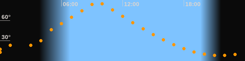 | Höchster Stand (Kulmination) | 09:33 Uhr (h = 86,7°) |