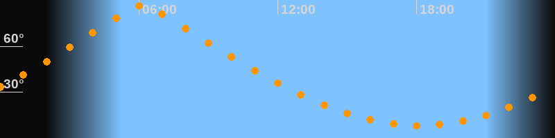 | Höchster Stand (Kulmination) | 06:09 Uhr (h = 86,7°) |