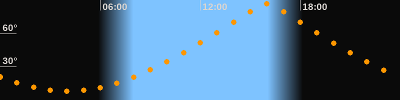 | Höchster Stand (Kulmination) | 15:59 Uhr (h = 86,7°) |