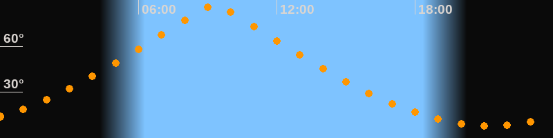 | Höchster Stand (Kulmination) | 09:18 Uhr (h = 86,7°) |