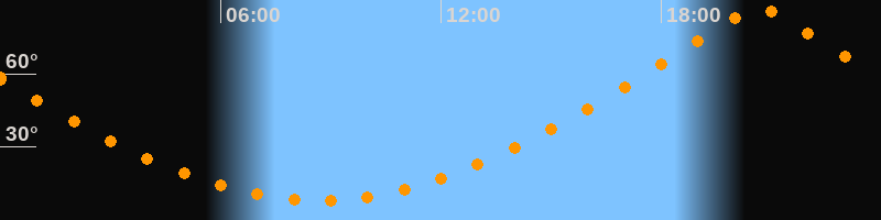 | Höchster Stand (Kulmination) | 20:40 Uhr (h = 86,7°) |