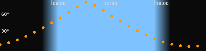 Höchster Stand (Kulmination)10:10 Uhr (h = 86,7°)
