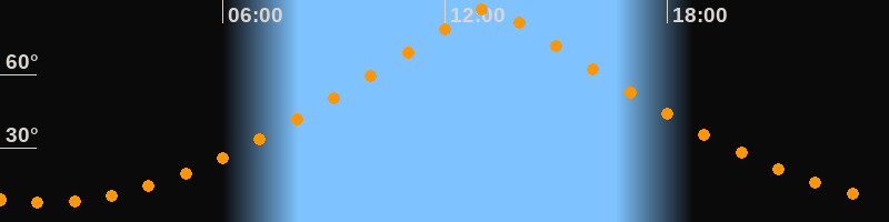 | Höchster Stand (Kulmination) | 13:08 Uhr (h = 86,7°) |