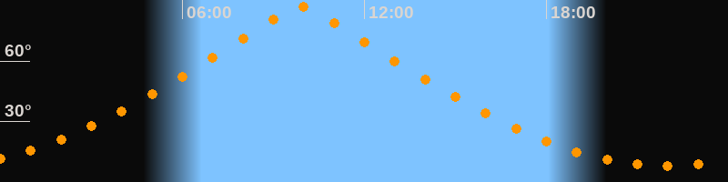 | Höchster Stand (Kulmination) | 09:55 Uhr (h = 86,7°) |