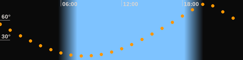| Höchster Stand (Kulmination) | 20:19 Uhr (h = 84,7°) |
