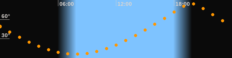 | Höchster Stand (Kulmination) | 19:47 Uhr (h = 84,7°) |