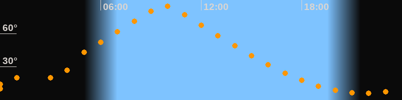 | Höchster Stand (Kulmination) | 09:48 Uhr (h = 84,7°) |