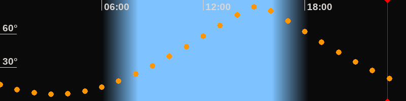 | Höchster Stand (Kulmination) | 15:12 Uhr (h = 84,7°) |