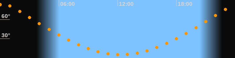 Höchster Stand (Kulmination)00:18 Uhr (h = 83,8°)