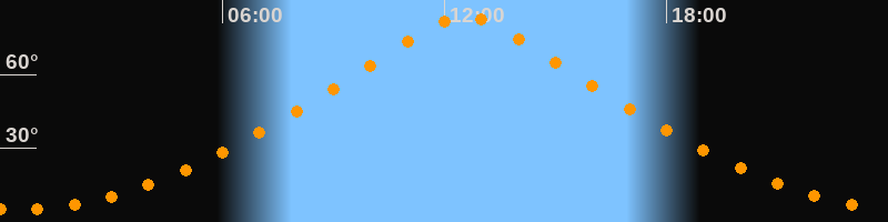 Höchster Stand (Kulmination)12:33 Uhr (h = 83,8°)