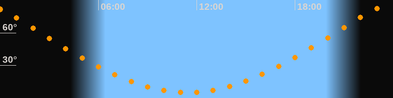 Höchster Stand (Kulmination)23:26 Uhr (h = 83,8°)