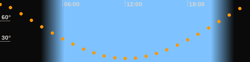 Höchster Stand (Kulmination)00:03 Uhr (h = 83,8°)