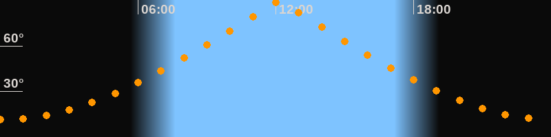 | Höchster Stand (Kulmination) | 12:07 Uhr (h = 89,9°) |