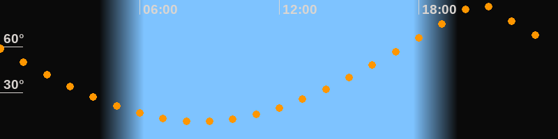 | Höchster Stand (Kulmination) | 20:35 Uhr (h = 89,9°) |
