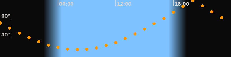 | Höchster Stand (Kulmination) | 20:04 Uhr (h = 89,9°) |