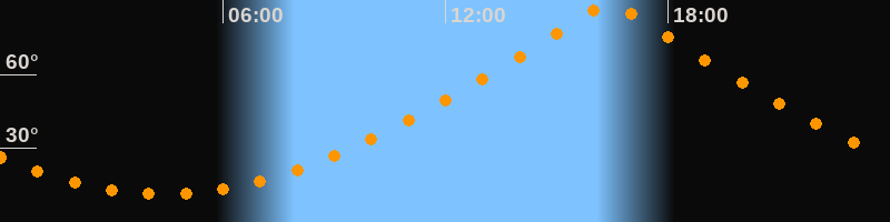 | Höchster Stand (Kulmination) | 16:24 Uhr (h = 89,9°) |