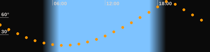 | Höchster Stand (Kulmination) | 19:14 Uhr (h = 89,9°) |