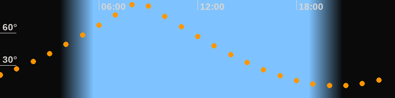| Höchster Stand (Kulmination) | 08:26 Uhr (h = 89,9°) |