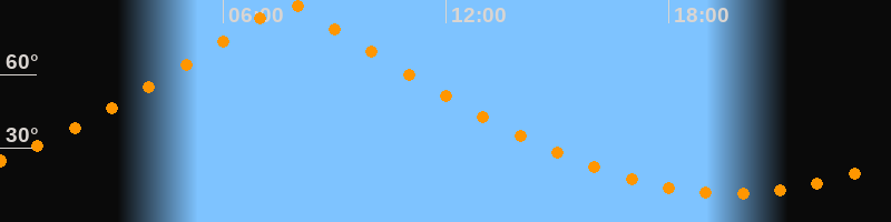 | Höchster Stand (Kulmination) | 07:46 Uhr (h = 89,9°) |