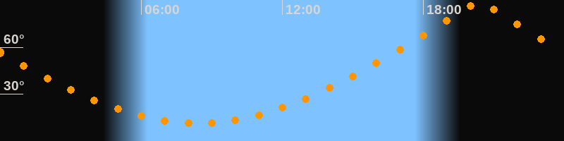 | Höchster Stand (Kulmination) | 20:22 Uhr (h = 89,9°) |