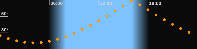 | Höchster Stand (Kulmination) | 16:07 Uhr (h = 89,9°) |