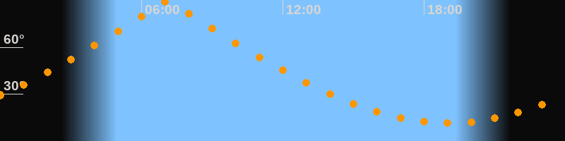 | Höchster Stand (Kulmination) | 07:04 Uhr (h = 89,9°) |