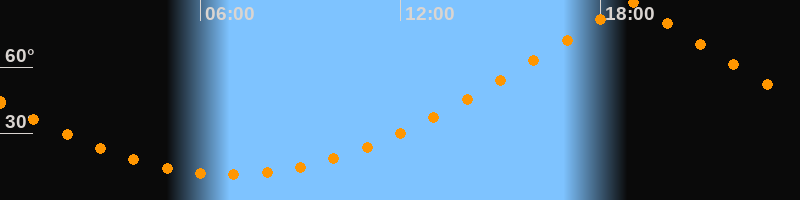 | Höchster Stand (Kulmination) | 18:54 Uhr (h = 89,9°) |