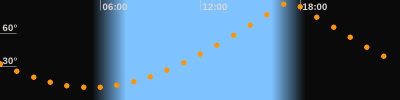| Höchster Stand (Kulmination) | 17:23 Uhr (h = 89,9°) |
