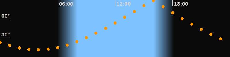| Höchster Stand (Kulmination) | 15:53 Uhr (h = 89,9°) |