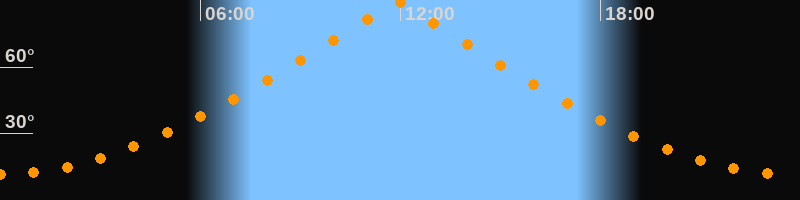 | Höchster Stand (Kulmination) | 11:53 Uhr (h = 89,9°) |