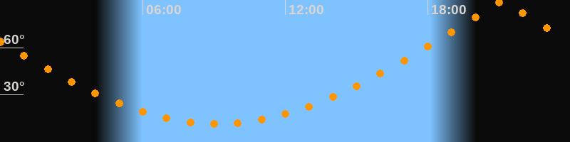 | Höchster Stand (Kulmination) | 21:08 Uhr (h = 89,9°) |