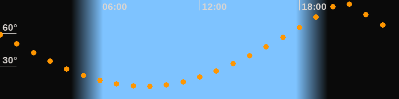 | Höchster Stand (Kulmination) | 20:37 Uhr (h = 89,9°) |