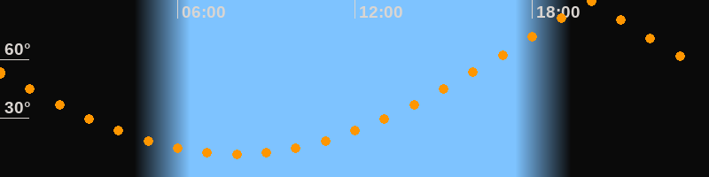 | Höchster Stand (Kulmination) | 19:58 Uhr (h = 89,9°) |