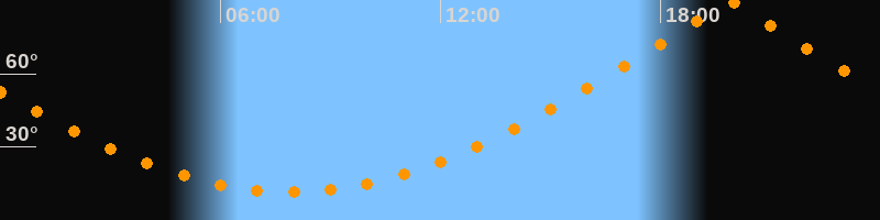 | Höchster Stand (Kulmination) | 19:54 Uhr (h = 89,9°) |