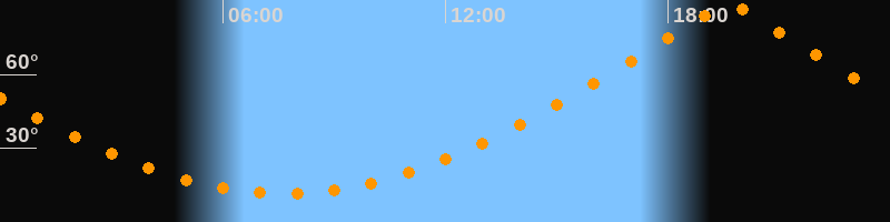 | Höchster Stand (Kulmination) | 19:38 Uhr (h = 89,9°) |