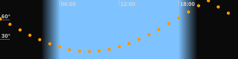 | Höchster Stand (Kulmination) | 20:55 Uhr (h = 89,9°) |