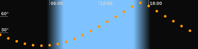 | Höchster Stand (Kulmination) | 17:02 Uhr (h = 84,9°) |