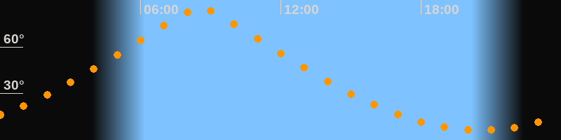 | Höchster Stand (Kulmination) | 08:32 Uhr (h = 84,9°) |
