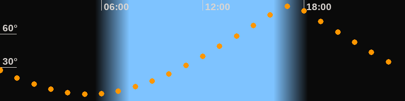| Höchster Stand (Kulmination) | 17:11 Uhr (h = 84,9°) |