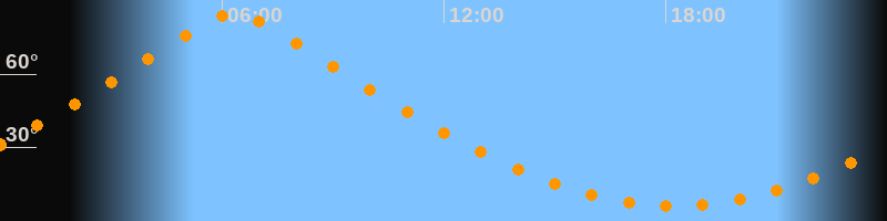 | Höchster Stand (Kulmination) | 06:20 Uhr (h = 84,9°) |