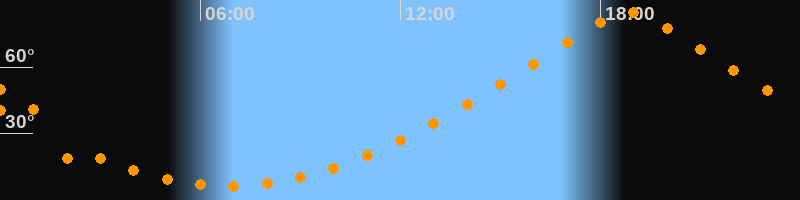 | Höchster Stand (Kulmination) | 18:50 Uhr (h = 84,9°) |
