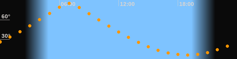 | Höchster Stand (Kulmination) | 06:58 Uhr (h = 84,9°) |