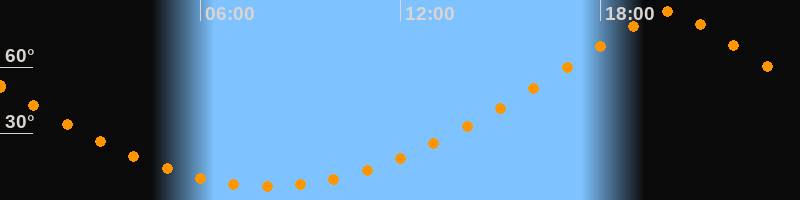 | Höchster Stand (Kulmination) | 20:01 Uhr (h = 84,9°) |