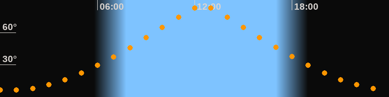 | Höchster Stand (Kulmination) | 12:30 Uhr (h = 84,9°) |