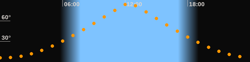 | Höchster Stand (Kulmination) | 12:22 Uhr (h = 84,9°) |